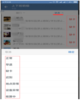 目前学校智慧校园可以提供各类考勤功能,如学生日常打卡考勤(早自习、晚自习、晚间宿舍)、教职工考勤等,经计算机科学系、物理系等部门测试使用,效果明显。主要功能如下: