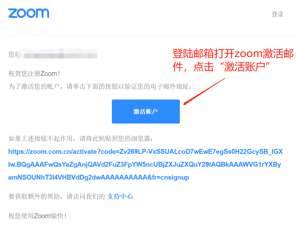2. 注册完成后,登录注册时填写的邮箱,找到zoom激活邮件。