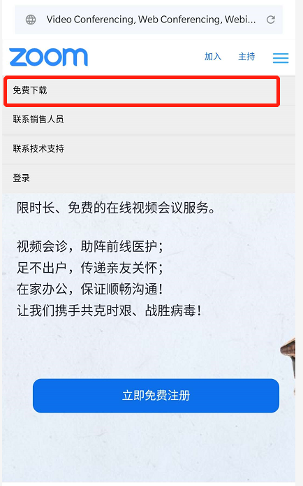 访问https://zoom.com.cn/download或者访问zoom.edu.cn免费下载,点击从Zoom网站下载,完成后安装。