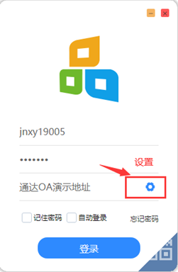 安装软件后,在登录界面点设置按钮,输入用户名密码、网络名称及OA地址(默认外网),然后点x回到登录页面。