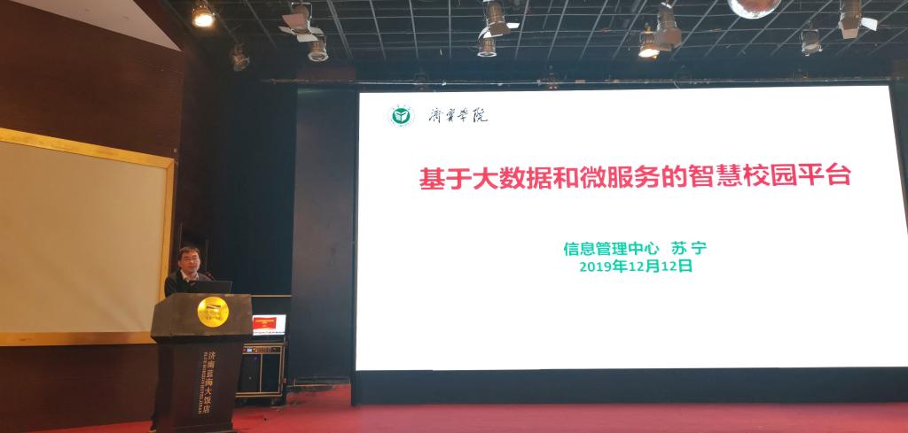 为贯彻落实《教育信息化2.0行动计划》和数字山东发展规划,探索高校信息化发展的有效模式和机制,建设融合教学、教研、管理、服务和校园生活的智慧化校园,推动高校网上和线下“一体化”校园服务办事大厅建设应用,12月12日,山东省教育厅在济南召开高校信息化建设应用交流会。作为受山东省教育厅邀请的4个本科高校之一,我校信息管理中心主任苏宁出席了会议并作了题为《基于大数据和微服务的智慧校园平台》的典型案例汇报交流。