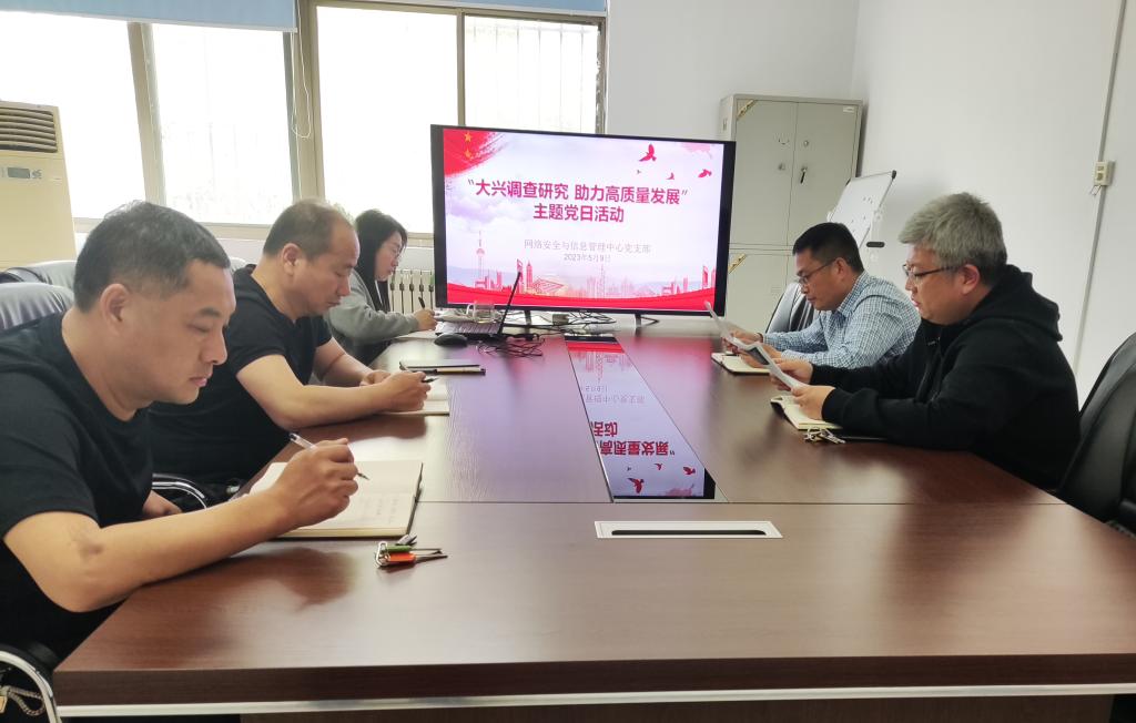 5月9日下午,网络安全与信息管理中心党支部在8号楼A106会议室开展了以“大兴调查研究 助力高质量发展”为主题的党日活动,活动由支部书记李鹏主持,支部全体党员参加。