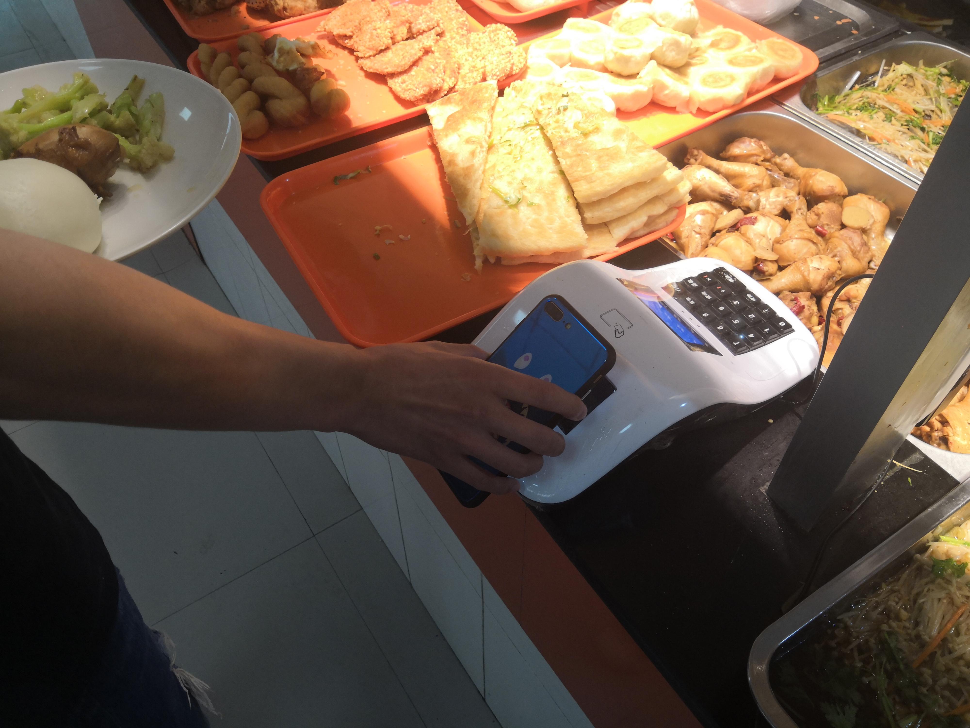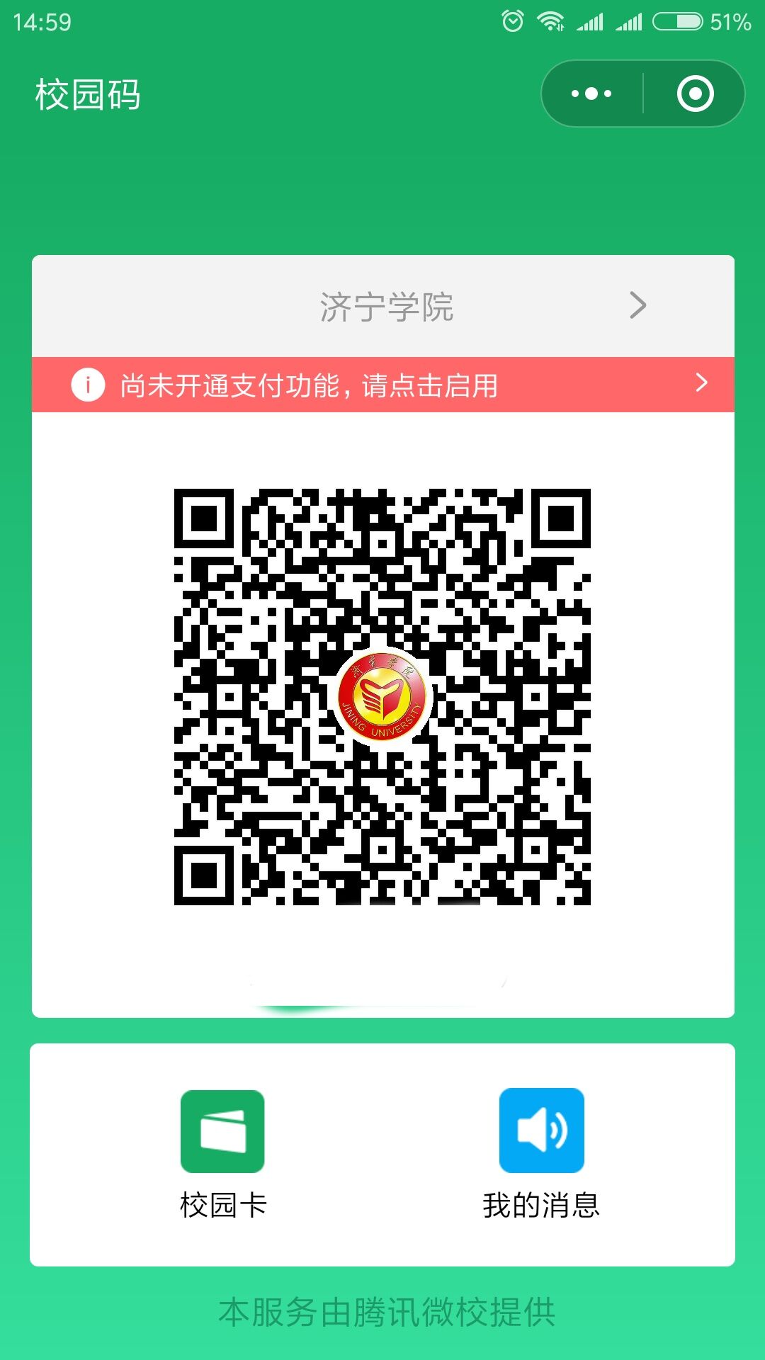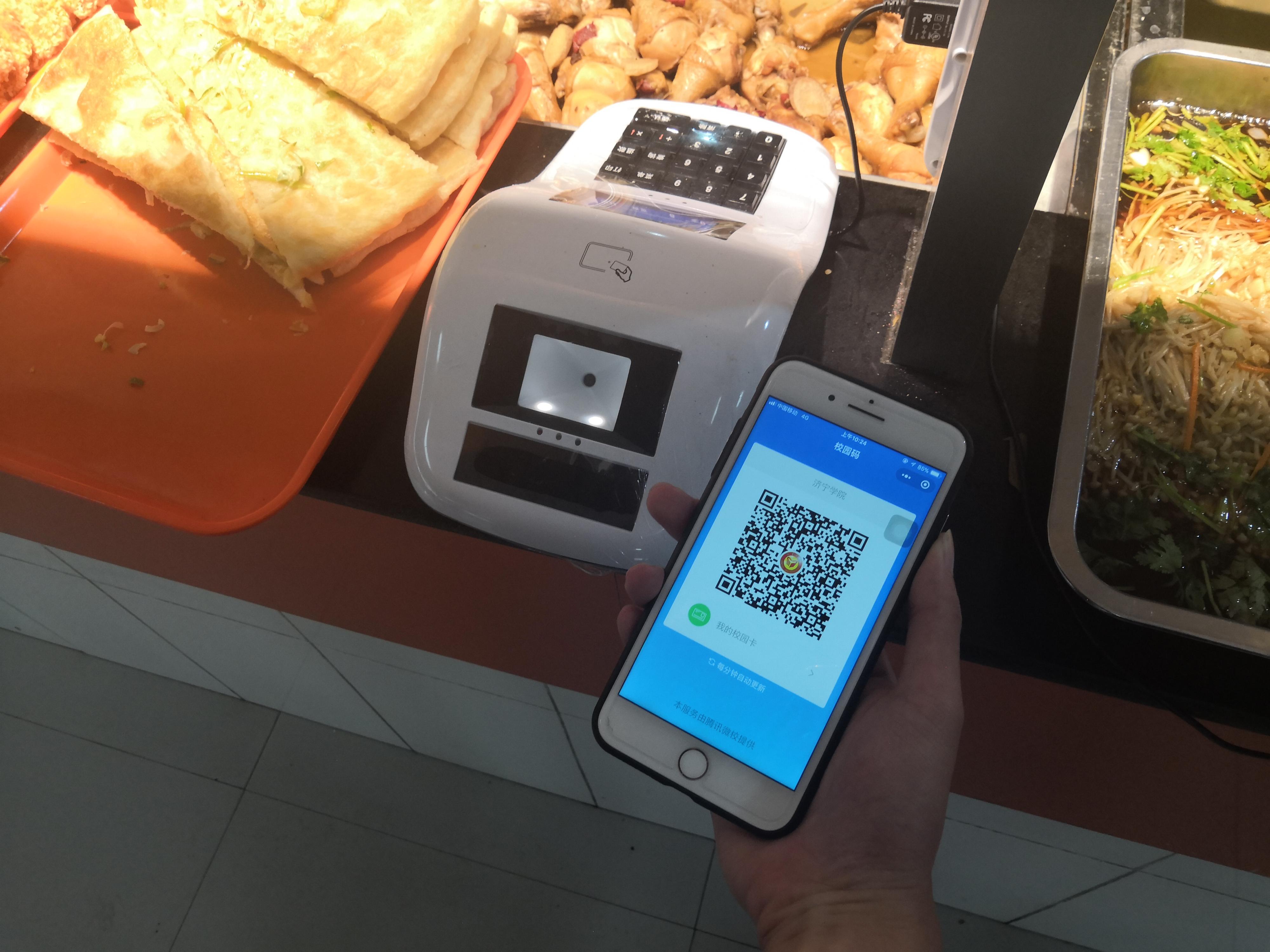 进入微信卡包,找到电子校园卡,调出校园码,将校园码放置在消费机的扫码处支付。