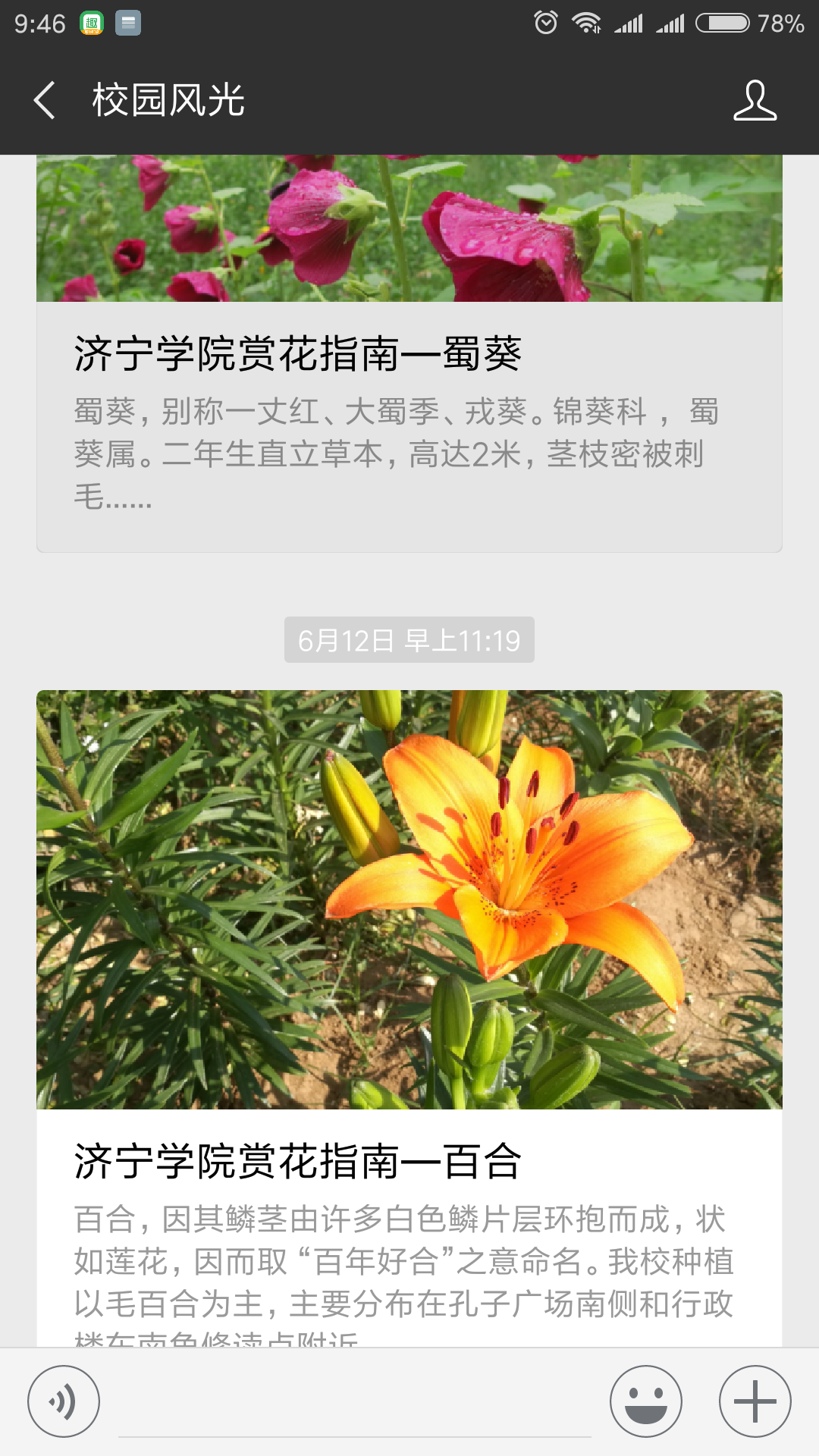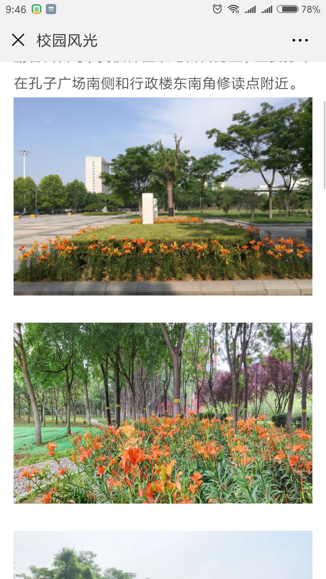 校园风光,信息管理中心和后勤处共同打造的一个栏目,不只是将学校美景做了全方位的展示,同时还对校园内的栽种的各类植物的基本知识做一简单的介绍、普及,让师生欣赏到美景的同时,增长了知识,增加了对校园的热爱之情。