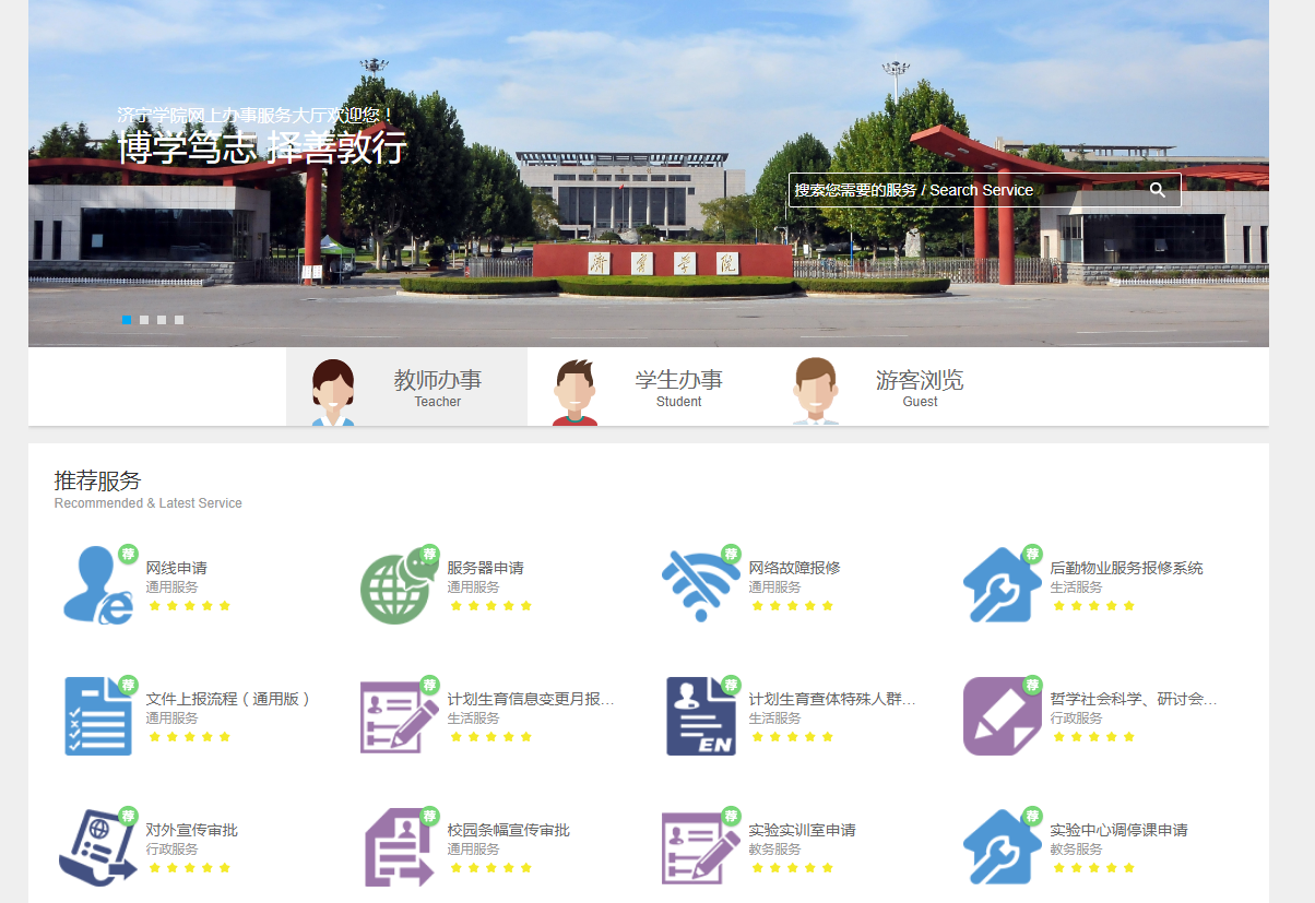 为进一步推进学校智慧校园建设,提升学校管理、服务和信息化水平,学校启用济宁学院网上办事服务大厅,采用线上线下结合的方式,为师生提供一站式服务。